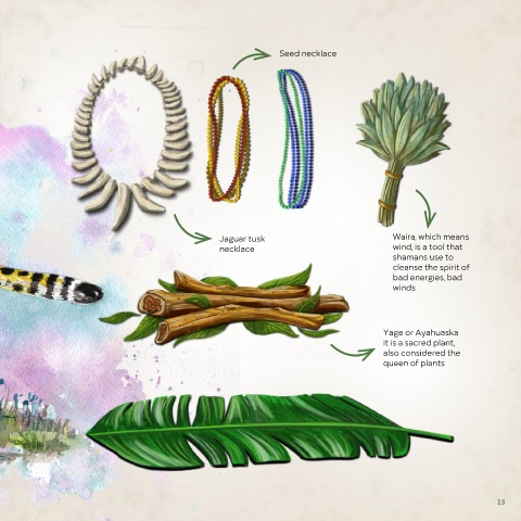 Seed necklace Jaguar tusk Waira, which means necklace wind, is a tool that shamans use to cleanse the spirit of bad energies, bad winds Yage or Ayahuaska it is a sacred plant, also considered the queen of plants 13