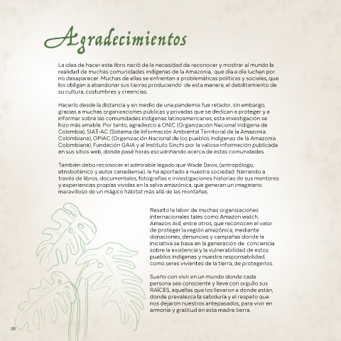 Colombiana), Fundación GAIA y al Instituto Sinchi por la valiosa información publicada